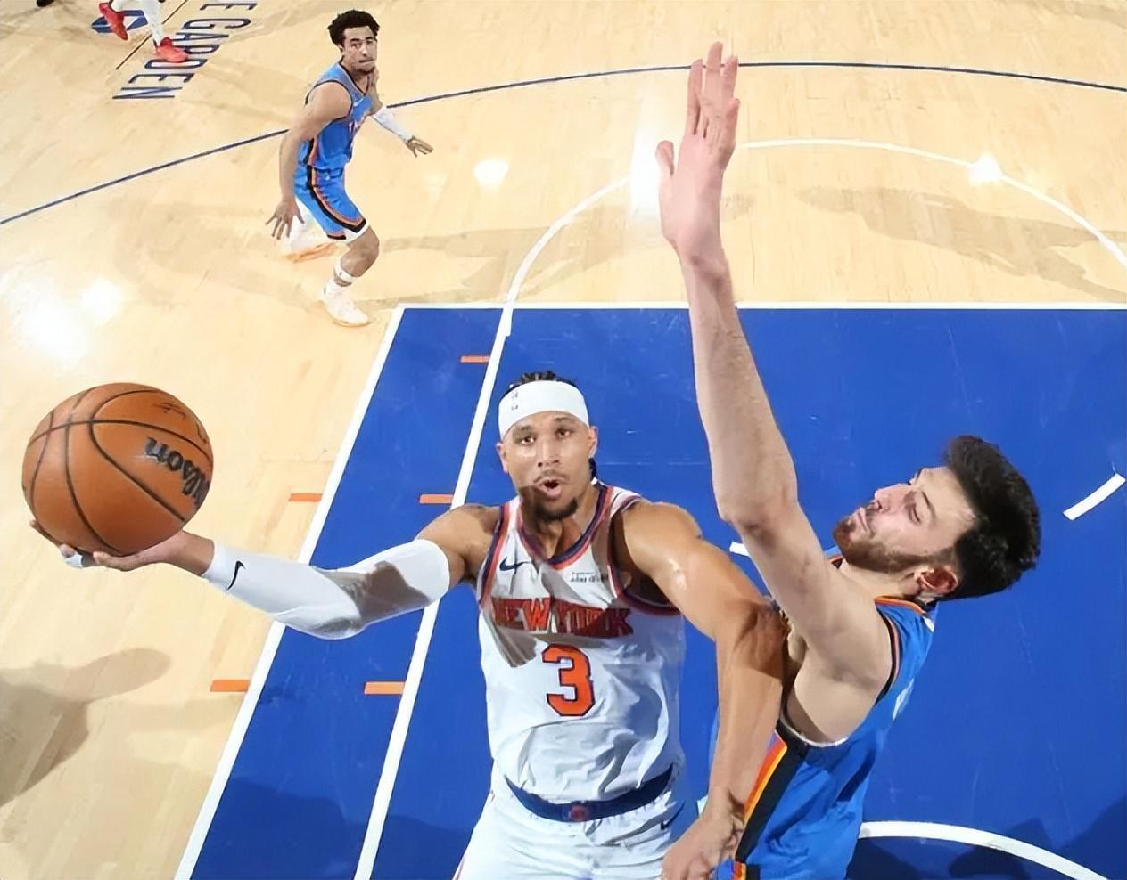 这场巅峰对决堪比季后赛强度,双方见招拆招,抓住对手的痛点往死里打。雷霆队靠着42投16中的超级高水平三分球一度建立起15分的巨大领先优势,尼克斯队则反其道而行之,专捏雷霆队内线短板统治禁区,篮板球(48-38)、前场篮板球(12-3)和内线得分(46-20)全面占优。同时,尼克斯队打出了速度与激情,以快制快,快攻得分(14-2)和利用失误得分(23-14)也是压倒性优势。